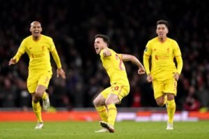 He scored the second in the second half and the goal was a masterpiece of clinical composure, lifting the ball over Arsenal goalkeeper Ramsdale, with VAR confirming that the timing of his run on to Alexander-Arnold’s pass was perfection. Arsenal playmaker Thomas Partey who arrived from AFCON after his side Ghana suffered an early knockout from the competition to collect the last-minute red card.
