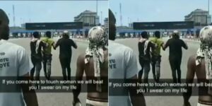 This happened this morning at the Lekki tollgate where protesters gather to disrupt movement from the mainland to the island and vice versa. The young man was caught allegedly molesting a woman and in no time the protesters gathered, beat him up and sent him away from their midst before continuing with their protest.