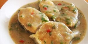 Ofe Nsala (white soup) is a sumptuous delicacy that is native to the Igbo tribe of Nigeria, especially the people of Anambra State. It is called Afia Efere by the Efik people. Ofe Nsala is known as white soup because palm oil is not used for the preparation unlike other local soups. It is also rich in fresh fish. Pounded yam, yam flour or cocoyam can be used to thicken the soup.
