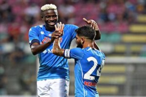 Nigerian star striker Victor Osimhen who joined Napoli recently has opened his score record with the club as he scored a hat-trick and provided an assist in his first game for the Italian side Napoli as they rolled over Italian fourth division club L’Aquila 11-0, in their second pre-season friendly game on Friday,