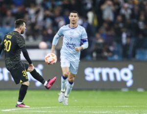 History was made yesterday as Cristiano Ronaldo and Lionel Messi played in the same match and the two scored. Ronaldo scored twice in his first game in Saudi Arabia and Lionel Messi was also on the scoresheet as Paris St-Germain edged a Riyadh All-Star XI 5-4 in a thrilling contest.
