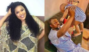 The award-winning Nollywood actress had her first baby with husband, Kola Ajeyemi, a Nollywood actor on August 13, 2019.