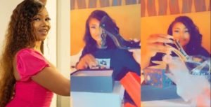 Former Big Brother Housemate Tacha posted a video of herself showing off “designer” shoes. In one of her previous posts, one of her fans had asked for her show size and promising to surprise her. Well, it looks like the fan came through with fake YSL shoes and others.